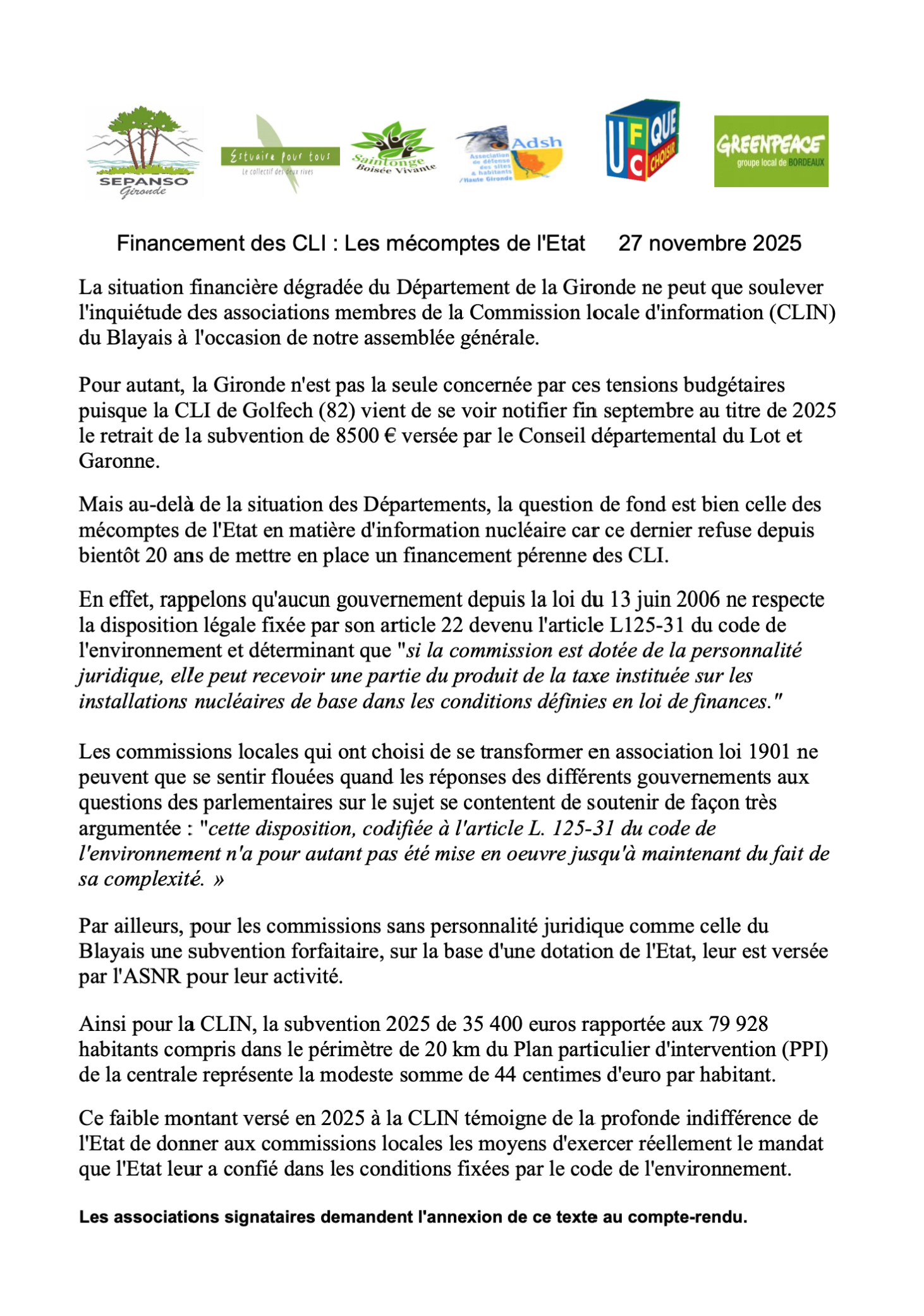 Financement des CLI : Les mécomptes de l’État
